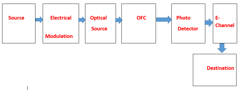 - The input source can generate the information in any form which is to be converted in to communication format that is electrical form which can derive optical source like LED/LASER.