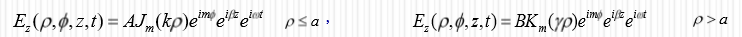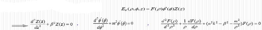 Using separation of variables for three variables: – Dielectric medium, so free charge density and current is zero. For a harmonic light wave, the electric field, in cylindrical coordinates follows :
