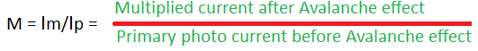 - The photo generated charge carrier are defined by an external potentials and they collide with more covalents bonds and due to the transfer of momentum covalents bonds are broken which results in to multiplication photons current.