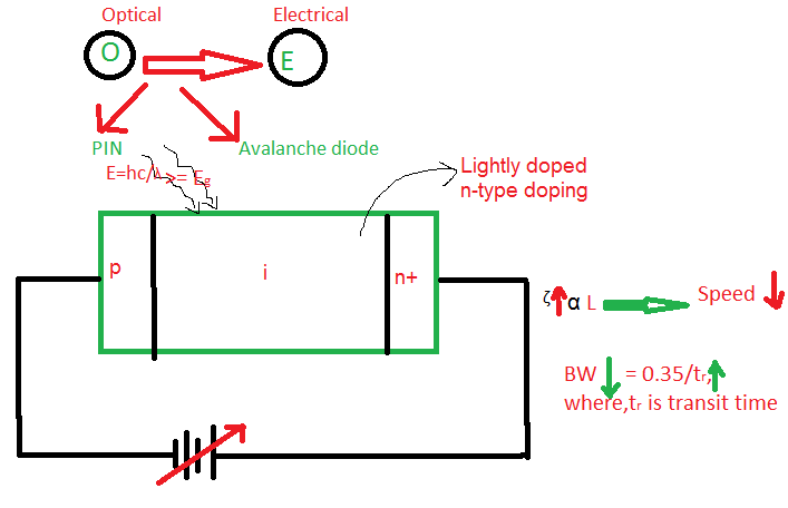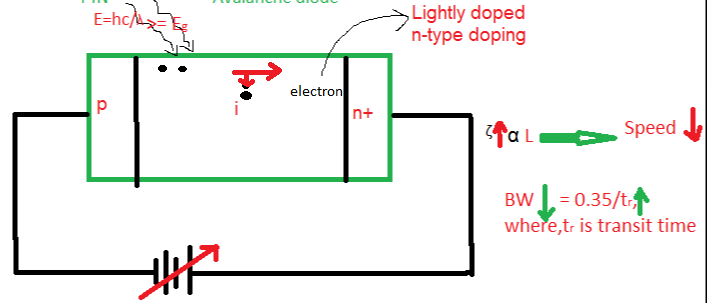 - NOTE:-The depletion width or the Reverse biasing can not be increased s high as possible because the speed of response of device will reduce. Hence, there is compromise between the speed of the photo detector and Sensitivity.