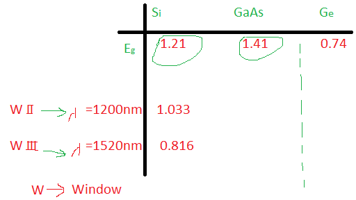 - Si and GaAs are not preferred for fabrication of photo detectors because the energy band gap is very high hence can not operate in window 2&3.