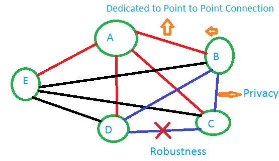 - Due to Point to Point connection if one link fail it does not incapacitated entire network hence, it is Robust.