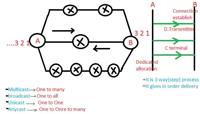 - Connection includes 3-way hand shake process i.e connection establishment, data transmitter & connection termination.