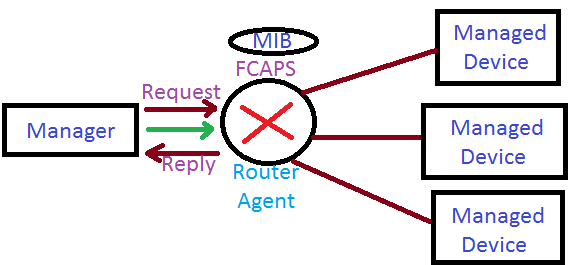 - SNMP is a network management protocol which based on the concept of request reply model in which manager request the network information from the agent i.e a Router.